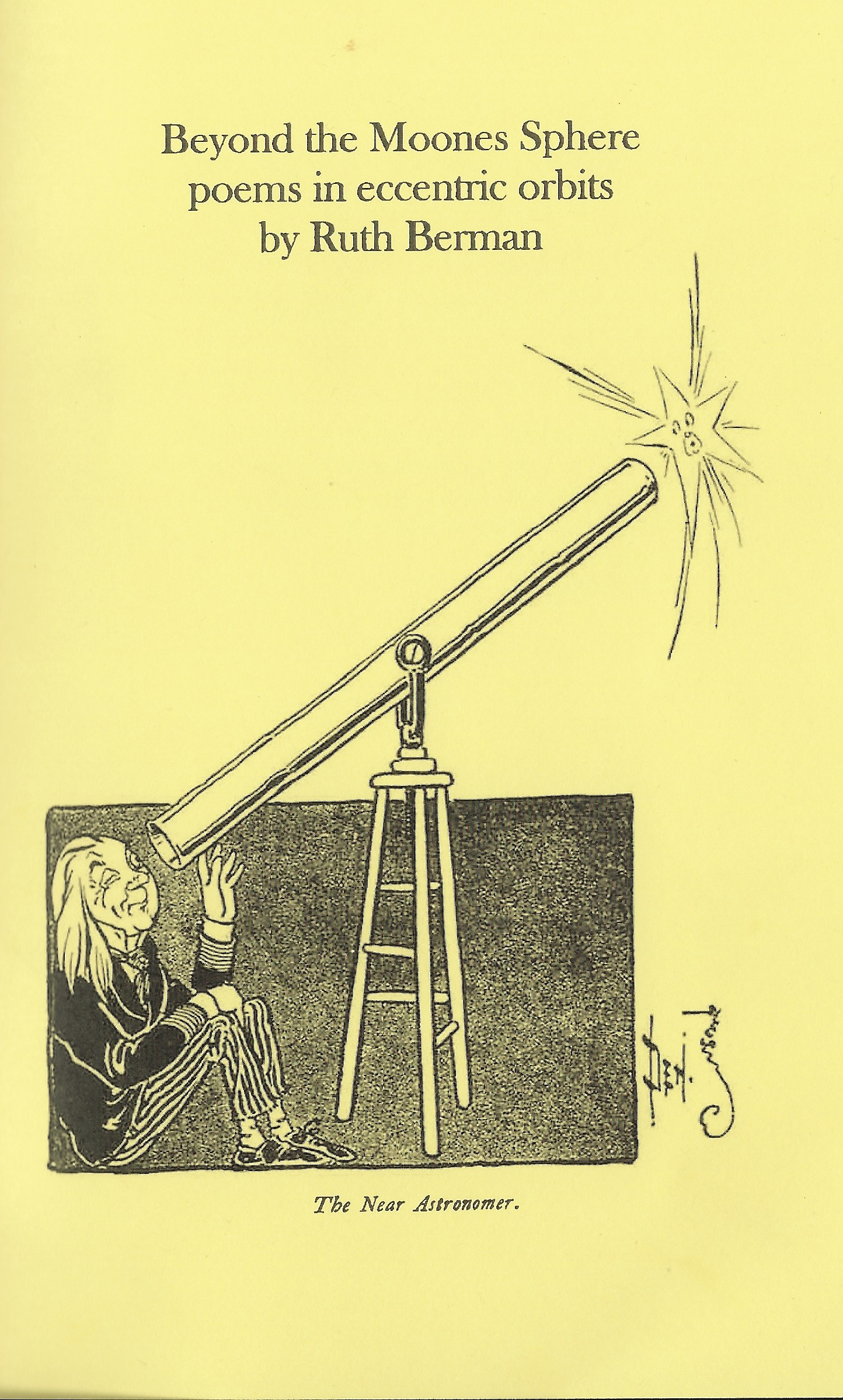 Beyond the Moones Sphere: poems in eccentric orbits, by Ruth Berman, Crumb Fairy Press, 2809 Drew Avenue South, Minneapolis, MN 55416, September 2024, 36 pp, stapled chapbook.