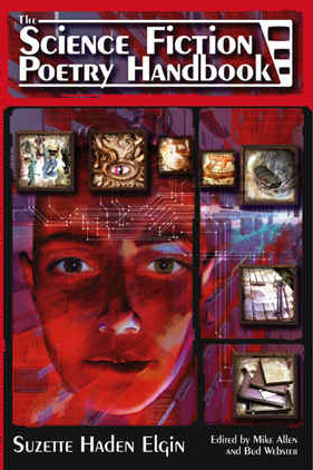 In 1999, Elgin published the essay “About Science Fiction Poetry”, available on the SFPA’s site, offering critical reflections on the lesser ‘value’ generally ascribed to science fiction poetry when compared to science fiction short stories and novels. Elgin rightly identifies that ‘The definition thing is a monstrous barrier’, and relates why she proposed that ‘an sf poem was one that had two parts: a science part, and a fiction – narrative – part.’ She then tells us that ‘the sf poets shouted me down in short order’, but finishes by supplying two of her own poems that might make her case as/by speaking for themselves. Then, in 2005, Elgin published the highly comprehensive and extremely useful Science Fiction Handbook (also available via the SFPA website). Chapter One tackles the same old ‘monstrous barrier’ as before, but now ‘speculative poem’ is understood as an ‘important term’ and ‘the most popular cover term […] commonly used to include all four of the other [genre] labels.’ Also, we now have an expansion on before, because ‘my personal definition for the science fiction poem itself has three [my emphasis] parts: